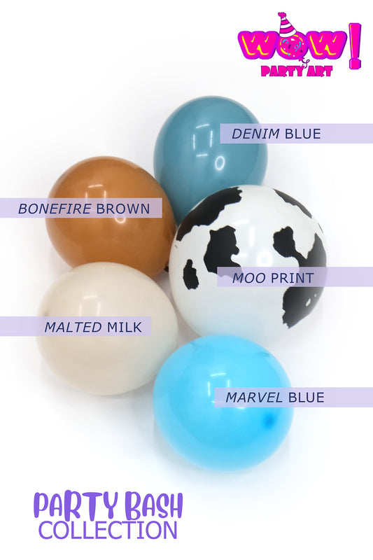 Yeehaw DIY Balloon Arch Garland Kit | Muted Blue Brown Cow Print Beige | First Rodeo Cowboy Kids Adults Birthday Party Organic Balloon Decor