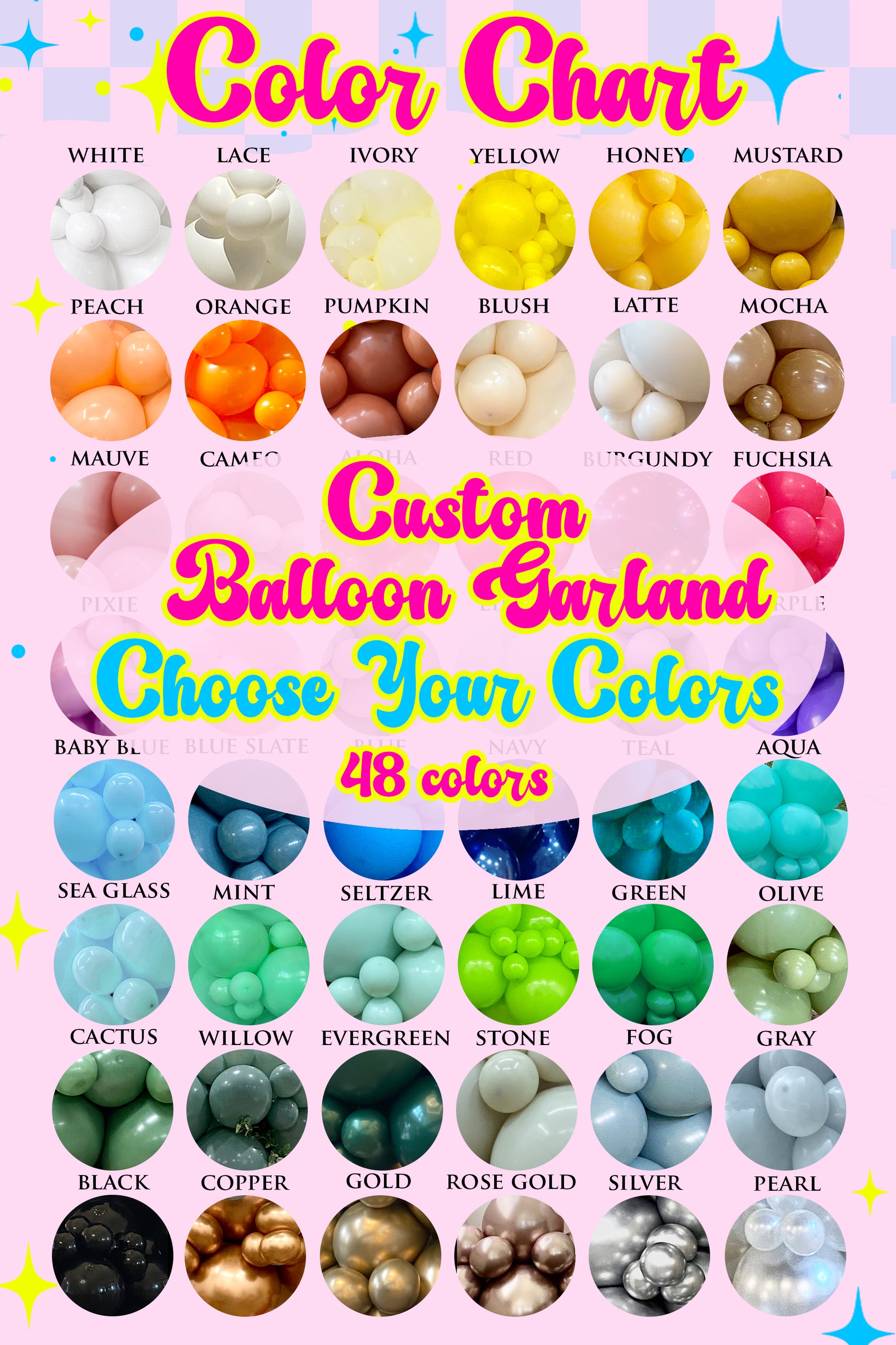 Sample Kits include 2 balloons of each color and is meant to showcase the colors and quality of balloons!